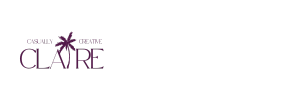 Purple text logo with a palm tree design and the words "Casually Creative Claire"